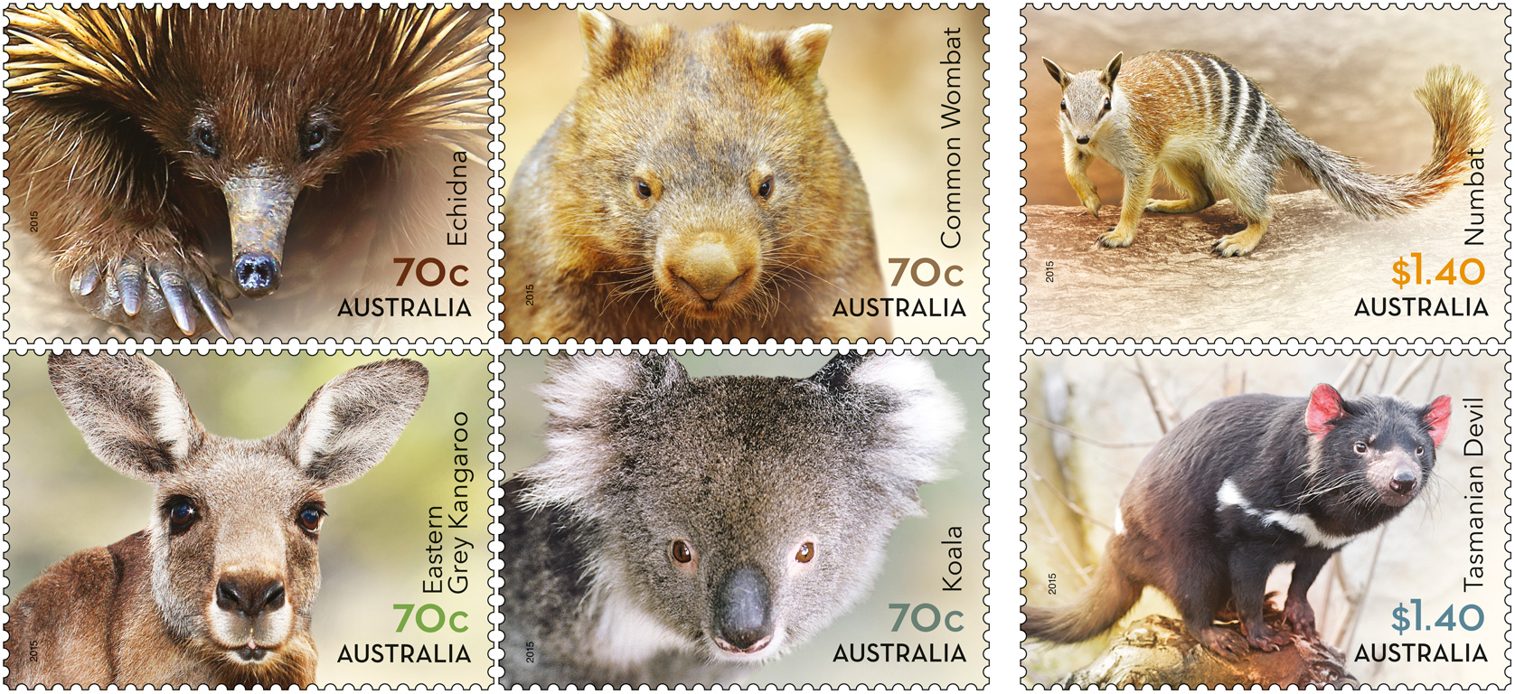 Australia Features Six Native Animals (Click to see all six animals) On January 13 Australia Post issued a set of Native Animals stamps that feature five Australian marsupials and one monotreme that are popular with locals and tourists. Monotremes are mammals that lay eggs instead of giving birth to live young. The monotreme featured in this issue—the Shortbeaked Echidna—feeds largely on ants and termites and is found throughout Australia. The only other monotreme is the Platypus. The stocky Common Wombat is found in the… Continue reading "Australia Features Six Native Animals" [PDF Document]