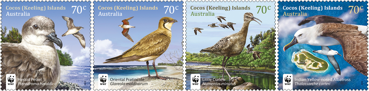 Visiting Birds on New Cocos (Keeling) Stamps The Cocos (Keeling) Islands comprise a group of 27 islands in two atolls. North Keeling Island is a single-island atoll, 24 kilometres north of the main atoll. Declared the Pulu Keeling National Park in 1995, its remoteness makes it a safe environment for many resident-breeding, migratory and vagrant birds—infrequent, perhaps accidental, visitors. North Keeling is one of the few pristine islands in the vast Indian Ocean, and its wetland is an important habitat. Of the approximately 60 bird species observed at Cocos (Keeling) Islands, … Continue reading "Visiting Birds on New Cocos (Keeling) Stamps" [PDF Document] |