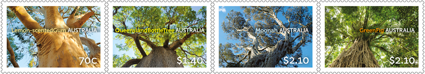 Australia Tree Issue Includes Sheetlet on Wood A March 17 new issue from Australia Post features ancient and distinctive native Australian trees. The stamp designs use striking photography to showcase the Lemon-scented Gum (Corymbia citriodora), Queensland Bottle Tree (Brachychiton rupestris), Moonah (Melaleuca lanceolata) and Green Fig (Ficus virens). Australia Post Philatelic Manager, Michael Zsolt said many Australians have a love of the natural world and understand the important role trees play in Australia’s biodiversity, sometimes living to a great age: "Australian native flora continues to be a popular theme, especially … Continue reading "Australia Tree Issue Includes Sheetlet on Wood" [PDF Document] |