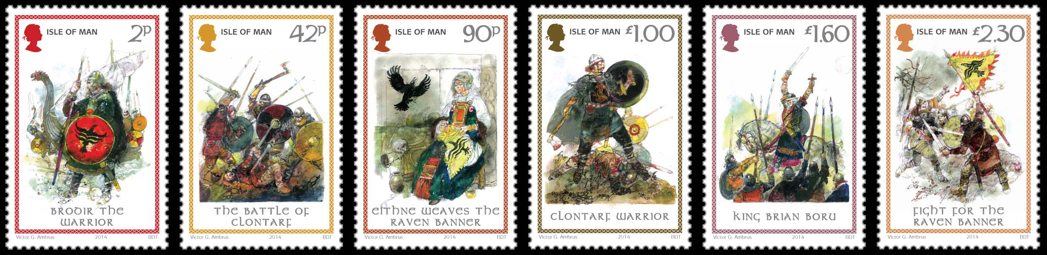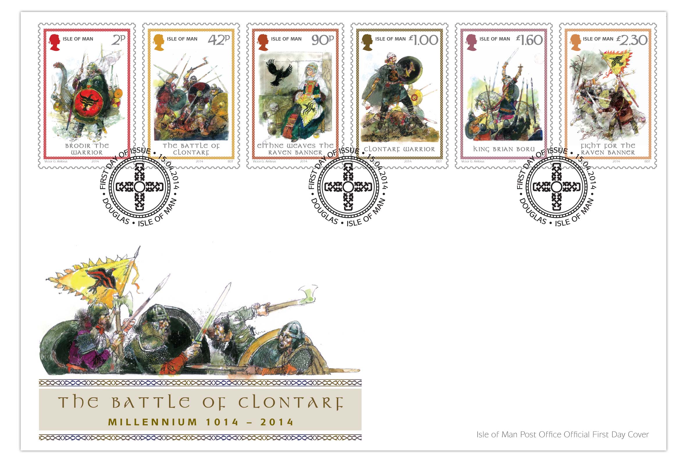 Battle of Clontarf [Click to see 6 designs, Official First Day Cover] On April 15 Isle of Man Stamps and Coins marked the millennium anniversary of the Battle of Clontarf with a set of six stamps, shown here along with the cover of the Presentation Pack. On Good Friday, April 23, 1014, the forces of high king of Ireland Brian Boru met the Norse controllers of the powerful trading port of Dublin, who had ambitions of extending their influence to the rest of the country. The fiercefighting just outside Dublin left thousands dead, including Brian. The Battle marked a turning point in the history of Ireland, stemming the power of the Norse and Danes. This commemorative set brings to life the historic events through the dynamic. . . Continue reading "Isle of Man Marks Epic Battle Millennium" [PDF Document] |