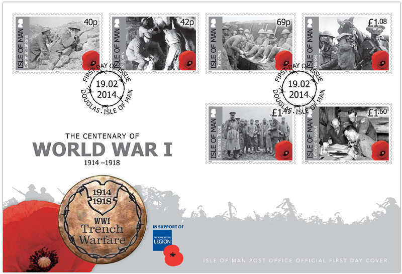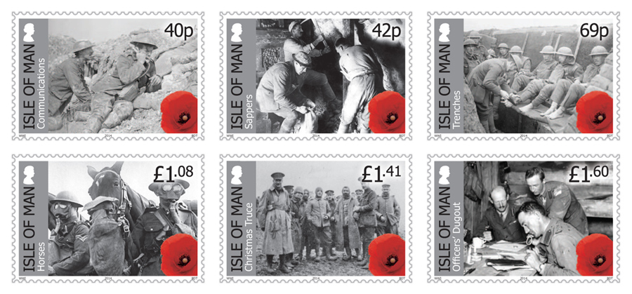 World War 1 Life In The Trenches [Click to see set of 6 designs, The Isle of Man and The Royal British Legion have joined together to mark the 100th anniversary of the outbreak of WWI with an impressive Trench Warfare issue. Perhaps best known for its yearly Poppy Appeal and Remembrance services, the Due to be released on February 19, the issue includes a set of six singles, a souvenir sheet and two presentation packs and First Day Covers. It is the first in a . . Continue reading "Isle of Man Launches WWI Series" [PDF Document] |