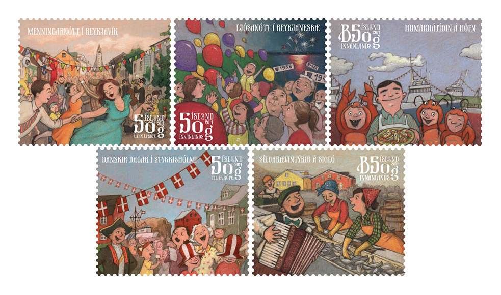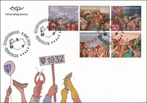 IcelandThe Republic of Iceland, located between the North Atlantic and the Arctic Oceans. Despite its name and its location, it enjoys a temperate climate and is famous for its active volcanos, glacial rivers and geysers. Settled by the Norse in 874, it was ruled by Norway and later Denmark, achieving independence in 1918. Iceland issued its first stamps in 1873. With a conservative philatelic program, the stamps of Iceland reflect its Norse heritage, its many attractions, and its status as one of the world's most highly developed economies. Town Festivals [Click to see 5 designs and First Day Cover] On May 8 Iceland issued a set of stamps featuring five more of its Town Festivals. The series started last year with five summer festivals (Sc. 1304-08). The number of town festivals held in Iceland in the summer has been increasing in recent years. They have become a valued part in the cultural life of many towns and communities in the country. . . . Continue reading: Iceland Adds to Town Festivals Series [PDF Document] |