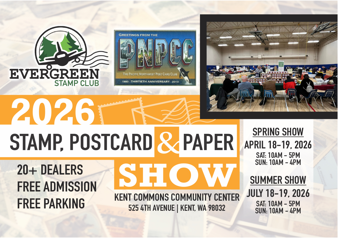 Click for more information: Evergreen Stamp Club STAMP, POSTCARD, & PAPER Show!