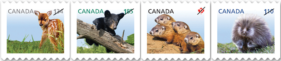 Baby Wildlife, Fawn [Click to see 4 designs] . . . Riding the wave of popularity that greeted a previous Baby Animals issue, once again Canada Post offers four new definitives depicting young animals indigenous to Canada. Created by designers Monique Dufour and Sophie Lafortune, these stamps are in the same visual style as the past two editions of this series, with the image of the animal set against a mainly white background, with a hint of their natural habitat revealed. The four animals, all native to Canada’s forests and fields, are: . . . Continue reading "Canada Issue New Definitives, Baby Wildlife" [PDF Format] |