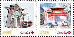 Gates of Chinatown, [Click to see souvenir sheet] On May 1, Canada Post issued a booklet of eight “Gates of Chinatown” stamps, also offered in a souvenir sheet (shown) and an uncut press sheet of five souvenir sheets. Wooden or stone gates, known as paifang in Mandarin, were originally used to separate subdivisions in Chinese cities. Eventually, these gates lost that role, but their doors remained as monuments. These gates are often the most. . . . |