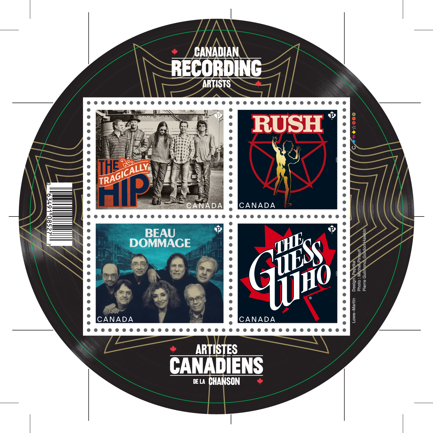 Canadian Recording Artists: The Tragically Hip, Rush, Beau Dommage, The Guess Who [Click to see 4 designs on Souvenir Sheet] On July 19 Canada Post issued a set of stamps honoring four Canadian recording artists. In the latest addition to this ongoing series, the 2013 set features bands—The Tragically Hip, Rush, The Guess Who and Beau Dommage—instead of individual performers. Five friends from Kingston, Ontario – Gordon Downie, Paul Langlois, Rob Baker, Gord Sinclair, and Johnny Fay – founded The Tragically Hip in 1984. The band’s name, chosen quickly before the first gig, was inspired by Elephant Parts, a short video by former Monkee, Michael Nesmith. The band has released 12 studio albums, two live albums, one extended play (EP) and 54 singles, and sold . . . Continue reading "Canadian Recording Stars Honored" [PDF Document] |
