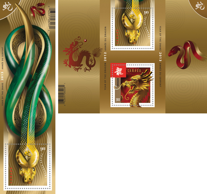 Year of the Snake [Click to see 3 designs] On January 8 Canada Post marked the Year of the Snake with an assortment of stamps and other philatelic souvenirs. The Year of the Snake runs from February 10, 2013 to January 30, 2014. Canada Post’s description of people born in the Year of the Snake isn’t totally flattering: “…in the Asian countries that celebrate the Lunar New Year, the Snake is viewed as the wisest and most enigmatic of all the zodiac creatures. In fact, it’s such a strong sign of intelligence and luck that an ancient Chinese saying notes that finding a snake in one’s home is great fortune and ensures . . . Continue reading "Canada Celebrates Year of the Snake" [PDF Document] |