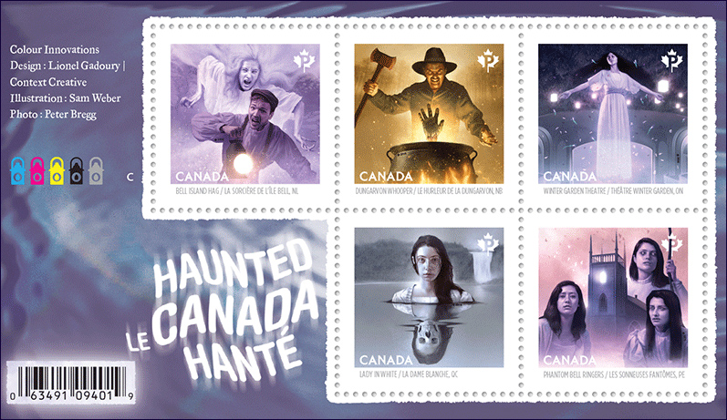 Canada Completes Eerie "Haunted" Series On September 8 Canada Post issued its third and final set in a three year Haunted Canada series that brings regionally renowned ghost stories to a nationwide Canadian audience as well as collectors around the world. The five stamps are employ otherworldly designs in keeping with these eerie tales: • The Dungarvon Whooper—Renous, New Brunswick. Lumberjacks returned from work one day to discover their young cook dead and his money belt missing— apparently the work of the camp boss. The cook was quickly buried as a snowstorm blew in, and in the night, terrifying whoops and wails issued from his shallow grave. The lumberjacks fled in terror, never to return. To this day, Miramichi residents claim . . . Continue reading "Canada Completes Eerie "Haunted" Series" |