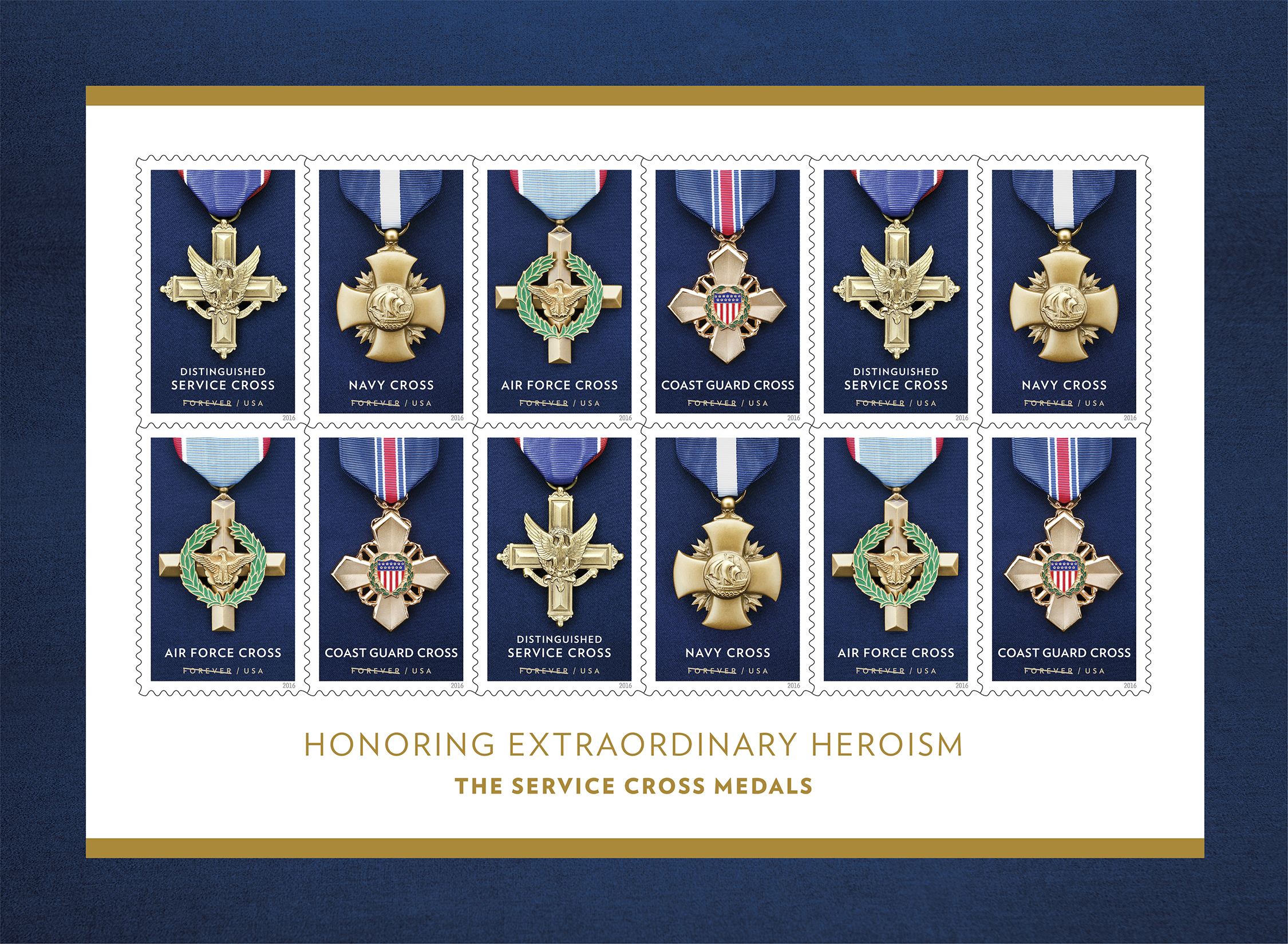 Service Cross Medals Forever Stamps This issue continues a Postal Service tradition of honoring the bravery and achievements of members of the U.S. Armed Forces. Previous issues having depicted the Medal of Honor, these new stamps honor recipients of the Distinguished Service Cross (Army), Navy Cross (Navy and Marine Corps), Air Force Cross, and Coast Guard Cross. These decorations are awarded for acts of extraordinary heroism in which an individual braved enemy fire, made bold decisions, and took selfless actions to rescue or protect fellow service members. Continue reading "USPS Recognizes Service Cross Recipients" [PDF Document] |