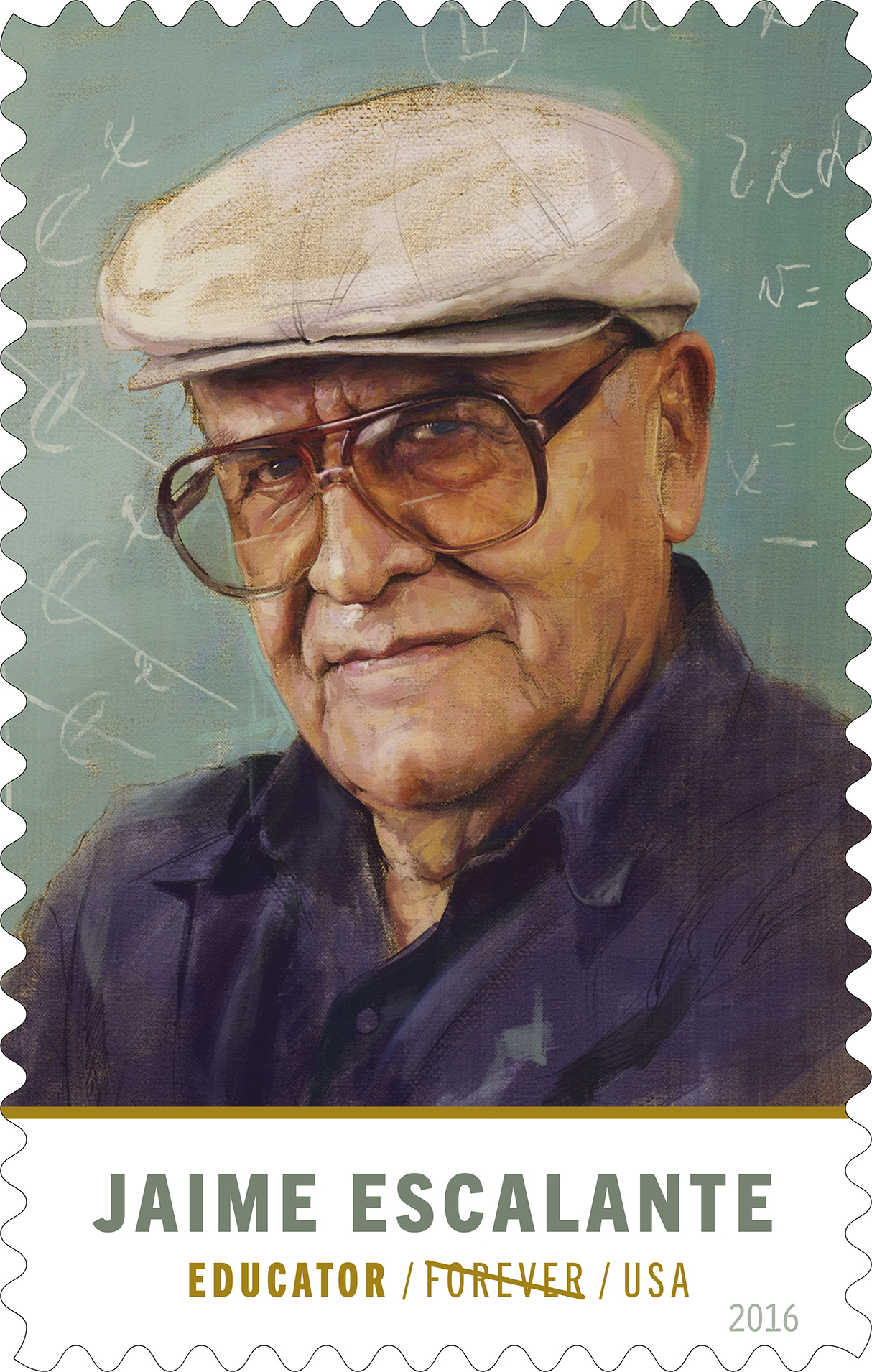 Jaime Escalante Forever Stamp Born to two schoolteachers in La Paz, Bolivia, Jaime Escalante migrated to the United States in 1963, and in 1974 obtained a teaching position at Garfield High in East L.A., a school with high dropout rates and gang violence. He was assigned to teach basic math to students who appeared to be undisciplined and uninterested. Using a variety of unusual methods—bonding with students over their shared love of the Lakers basketball team, dressing as a chef and using cooking as a way to teach percentages, competing against his students in sporting events and teasing them about their habits and tastes—he motivated his students to attend class and to learn. In 1988 the story of the dedicated teacher and his highly motivated students was told in the movie, Stand and Deliver , and the book Escalante: The Best Teacher in America . In 1998, he retired from teaching in the U.S., and a year later was inducted into the National Teachers Hall of Fame. He died on March 30, 2010. |