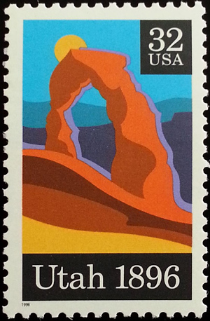 Arches National Park, Moab, Utah The stamp image is a photograph by Tom Till of Moab, Utah, and represents the iconic Delicate Arch. Delicate Arch is just one of more than 2,000 stone arches in the park, which is located in eastern Utah and contains the greatest density of natural arches in the world. The park is a landscape of contrasting colors, landforms and textures with thousands of natural stone arches, hundreds of soaring pinnacles, massive fins and giant balanced rocks. Delicate Arch was featured on the 1996 stamp commemorating the Centennial of Utah Statehood. Zion National Park, in southwestern Utah was featured on the 8¢ 1934 National Parks stamp and on a 2009 Scenic American Landscapes Airmail stamp. Click to see a previous issue of Arches National Park. |