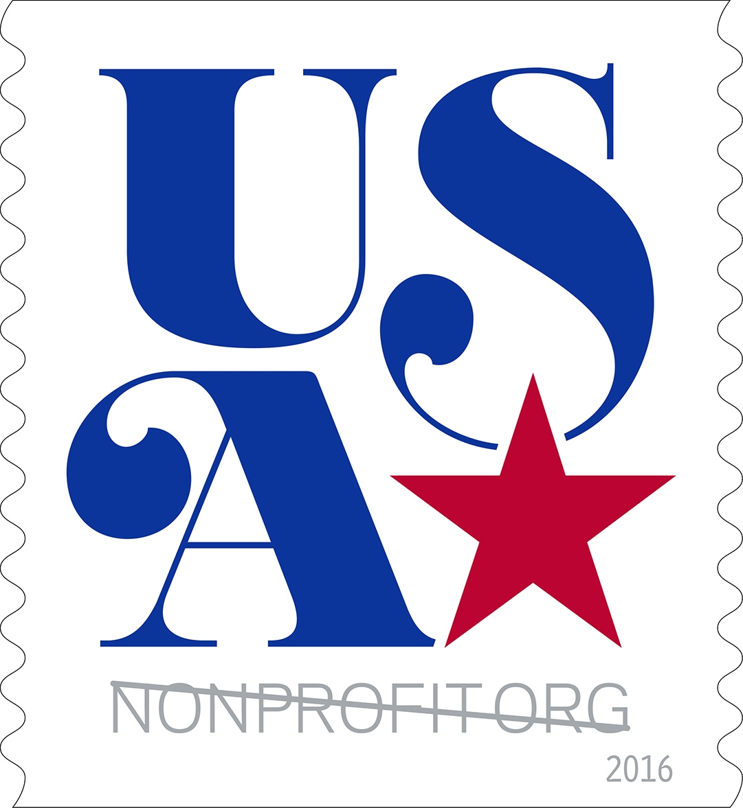 USA Non-profit Nondenominated (5¢) Stamp This new nondenominated, nonprofit-price stamp, showcases the letters "USA" in a stamp that the Postal Service describes as "a patriotic design with full letterforms and flourishes [that] is a confident, playful, and celebratory treatment of one of our most familiar abbreviations." The stamp is intended for use by high volume non-profit mailers. Studies have shown that mail is more likely to be opened when the envelope bears a stamp rather than a printed indicia. Mailers apply the stamp to each mailing piece, calculate the total postage due and pay the Postal Service a lump-sum for the actual postage in excess of 5¢ per piece. |