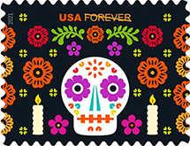 Day of the Dead Forever Stamps In recent decades, Day of the Dead has caught on in the United States as a festive and increasingly popular celebration for all ages. These new stamps will be the first issued by the U.S. Postal Service to mark this holiday. Luis Fitch designed and illustrated the stamps. Antonio Alcalá was the art director. |