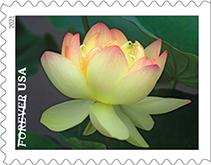Garden Beauty Forever Stamps Garden Beauty celebrates America's love of flowers and gardens with 10 new stamp designs in a booklet of 20. The stamps include a pink flowering dogwood; a rose-pink and white tulip; an allium, or ornamental onion; a pink and white Asiatic lily; a magenta dahlia; a yellow and pink American lotus; a pink moth orchid with mottled petals; a pink and white sacred lotus; an orange and yellow tulip; and a yellow moth orchid with a pink center. Art director Ethel Kessler designed the stamps with existing photographs by Allen Rokach.