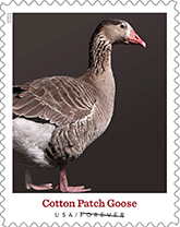 Heritage Breeds Forever Stamps These stamps pay tribute to heritage breeds, preindustrial farm animals that are enjoying renewed attention for their versatility, adaptability and unique genetic traits. This pane of 20 stamps includes photographs of 10 heritage breeds: the American Mammoth Jackstock donkey, the Narragansett turkey, the Cayuga duck, the San Clemente Island goat, the Mulefoot hog, the Cotton Patch goose, the American Cream draft horse, the Barbados Blackbelly sheep, the Milking Devon cow and the Wyandotte chicken. Zack Bryant designed the stamps with photographs by Aliza Eliazarov. Greg Breeding served as art director. |