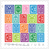 Mystery Message Forever Stamp The new Mystery Message stamp will put your sleuthing skills to the test. Featuring bright colors and interesting shapes, the stamp design is a visual riddle spelling out a message. Each colorful square contains a letter in an interesting pattern. The patterns, though seemingly random, were carefully placed so that when put all together, the message reads, “MORE THAN MEETS THE EYE!” Art director Antonio Alcalá designed the stamp. |