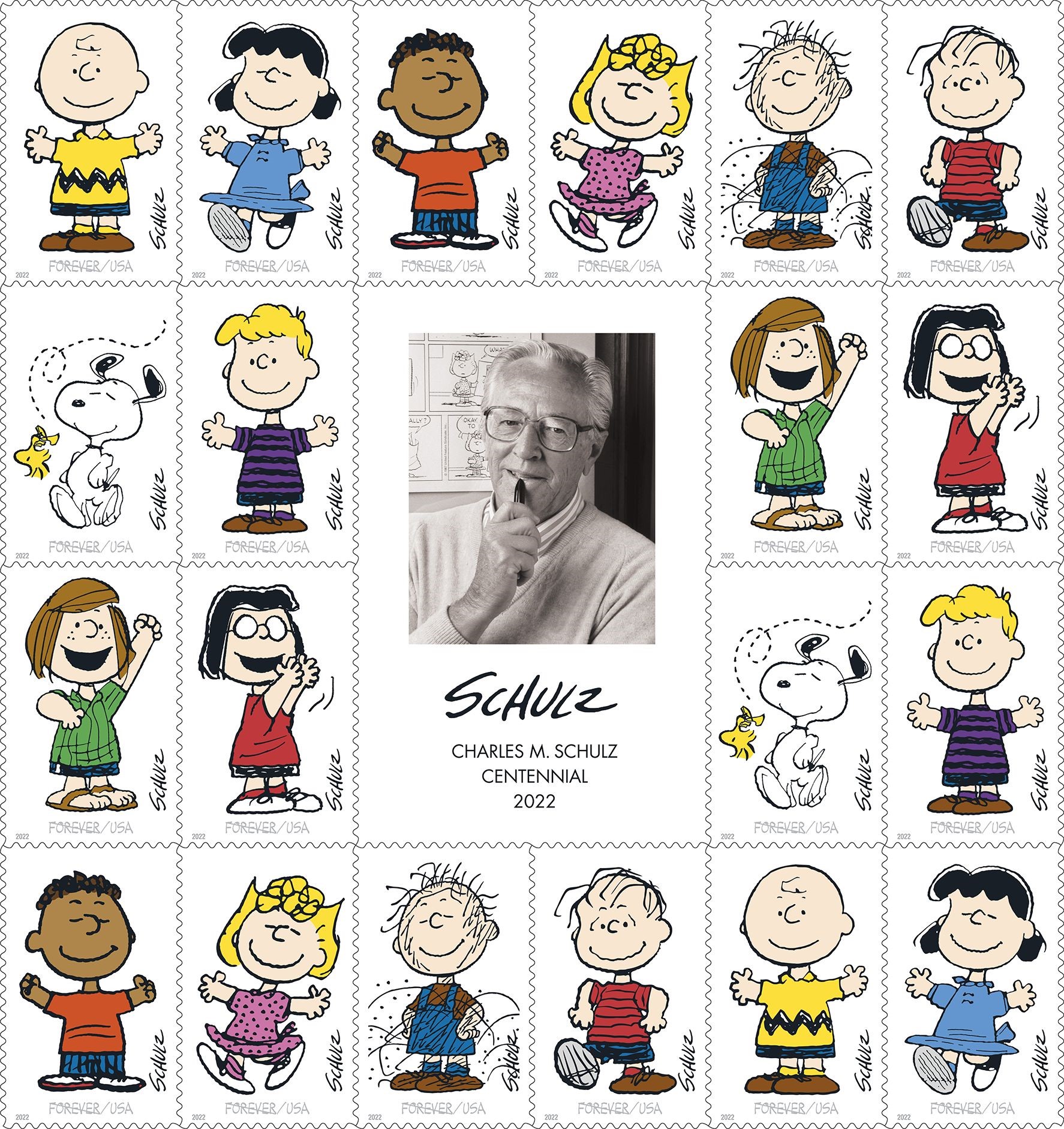 Peanuts Forever Stamps Ten new stamps salute the birth centennial of cartoonist Charles M. Schulz whose “Peanuts” characters are some of the best known and most beloved in all of American culture. For five decades, Schulz alone wrote and drew nearly 18,000 strips, the last one published the day after he died. Each character reflects Schulz’s rich imagination and great humanity. His resonant stories found humor in life’s painful realities including rejection, insecurity and unrequited love. The ten Peanuts stamps form a frame around a 1987 photograph of Schulz. Art director Greg Breeding designed the stamps from Schulz’s artwork and an existing photograph by Douglas Kirkland. Santa Rosa is home to the Charles M. Schulz Museum and Research Center. Schulz moved his home and studio to Santa Rosa in 1969, and lived there for the rest of his life. The regional airport is named in his honor and bronze Peanuts sculptures grace the airport and downtown’s historic Railroad Square. |