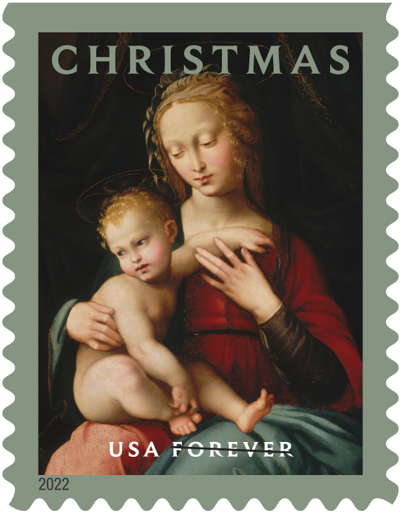 Virgin and Child Forever Stamp This year’s Virgin and Child stamp features "Virgin and Child," an oil-on-panel painting from the first half of the 16th century by a Florentine artist known as the Master of the Scandicci Lamentation. This painting is in the collection of the Museum of Fine Arts, Boston. Per Wikipedia, the artist, whose name is Francesco Granacci, was born in 1469 and was trained in Florence in the workshop of Domenico Ghirlandaio. His earliest works show the strong influence of Ghirlandaio as well as Filippino Lippi, who might have been Granacci’s first master. of particular interest, Granacci was a lifelong friends of Michelangelo and was among the artists who were asked to help Michelangelo with the Sistine chapel ceiling. Art director Greg Breeding designed the stamp. |