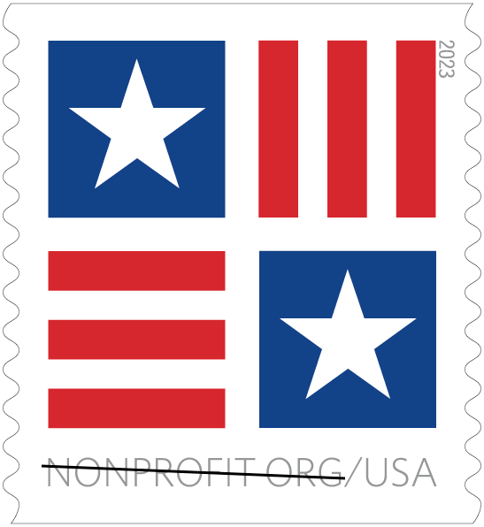 Patriotic Block Stamp - nonprofit-price stamp Patriotic Block will be a new nondenominated, nonprofit-price stamp intended for bulk mailings by authorized nonprofit organizations and will be sold in self-adhesive coils of 3,000 and 10,000. This stamp displays the components of the American flag–the stars and stripes–arranged in a four-quadrant block on a white background. Carol Beehler designed the stamp with art direction by Antonio Alcalá. Continue reading: Patriotic Block Issued March 1 [PDF Document] |